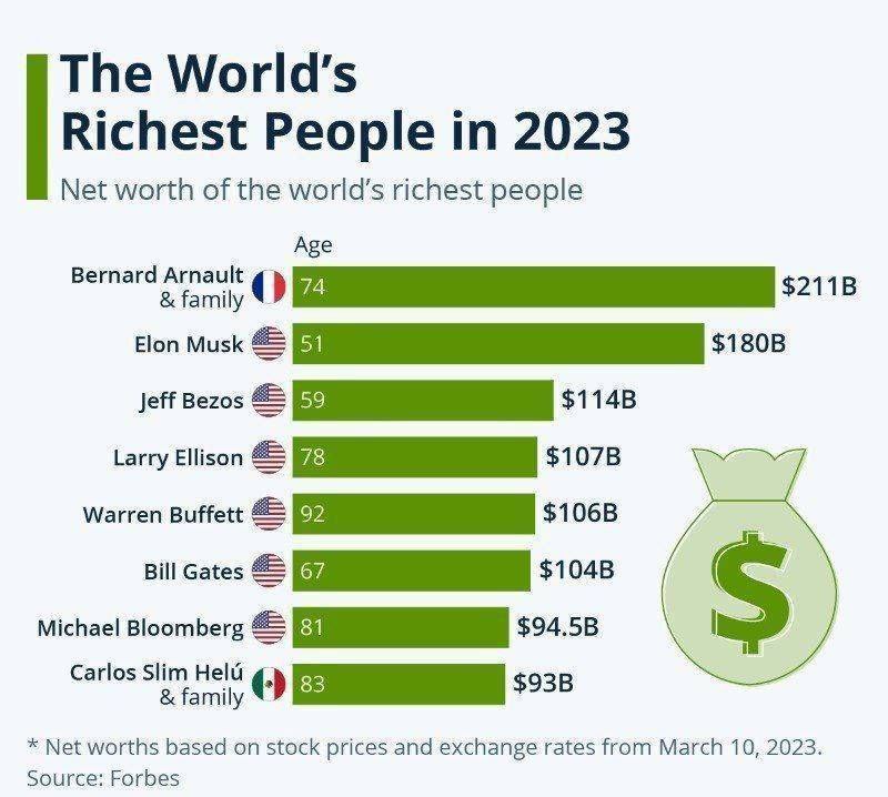 🔹برنار آرنو ۷۴ ساله فرانسوی از ایلان ماسک جلو زد و ثروتمندترین مرد جهان شد.
