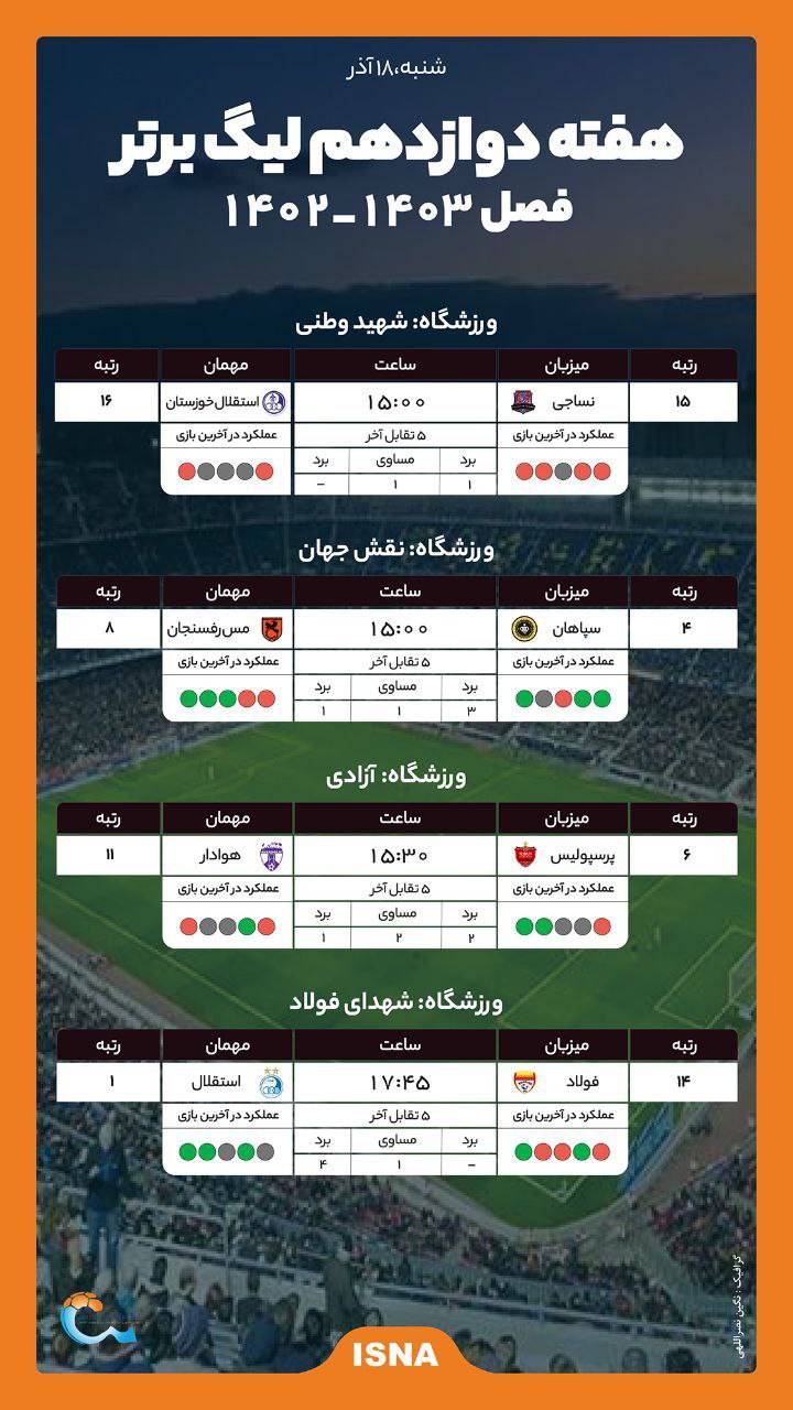 جدول بازیهای امروز لیگ برتر فوتبال