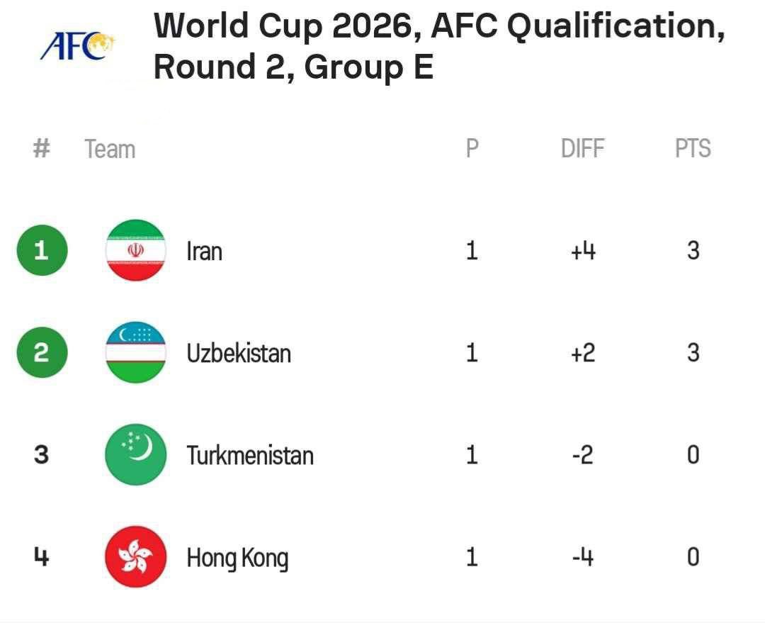 جدول گروه E مقدماتی جام جهانی ۲۰۲۶ در قاره آسیا