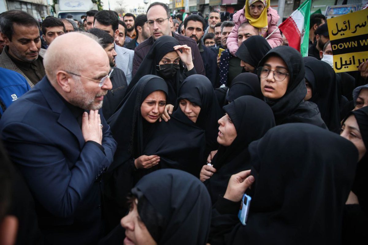حضور قالیباف در مراسم تشییع شهیده فائزه رحیمی