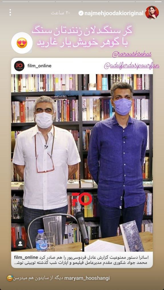 🔹در واکنش به این خبر، نجمه جودکی (مجری سابق صداوسیما) با انتشار یک استوری از دو همکار سابقش حمایت کرد.