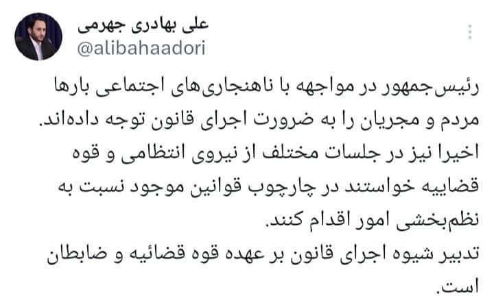 🔹رئيس جمهور در مواجهه با ناهنجاریهای اجتماعی بارها مردم و مجریان را به ضرورت اجرای قانون توجه دادهاند.