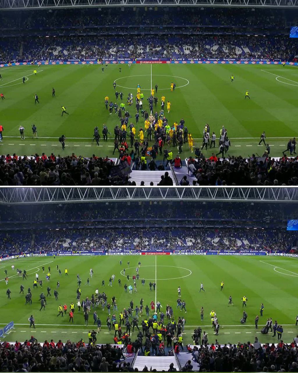 🔹پس از سوت پایان بازی درحالی که بازیکنان بارسلونا در خانه حریف مشغول برگزاری جشن قهرمانی بودند،هواداران اسپانیول به زمین بازی هجوم آورده و مانع از جشن بارسایی ها در ورزشگاه خانگی اسپانیول شدند.