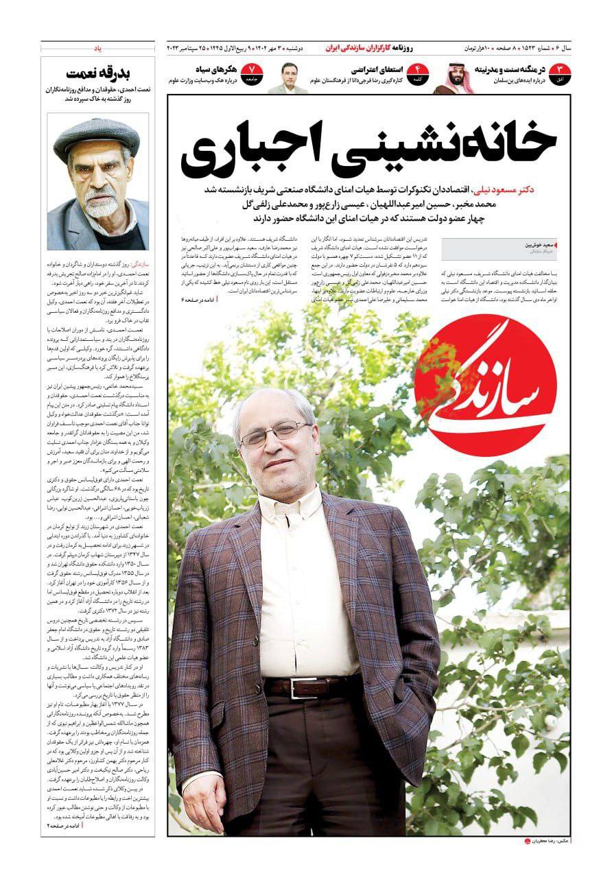 🔹دکتر «مسعود نیلی»، اقتصاددان تکنوکرات توسط هیات امنای دانشگاه صنعتی شریف بازنشسته شد. «محمد مخبر»، «حسین امیرعبداللهیان»، «عیسی زارعپور» و «محمدعلی زلفیگل»، چهار عضو دولت هستند که در هیات امنای این دانشگاه حضور دارند/