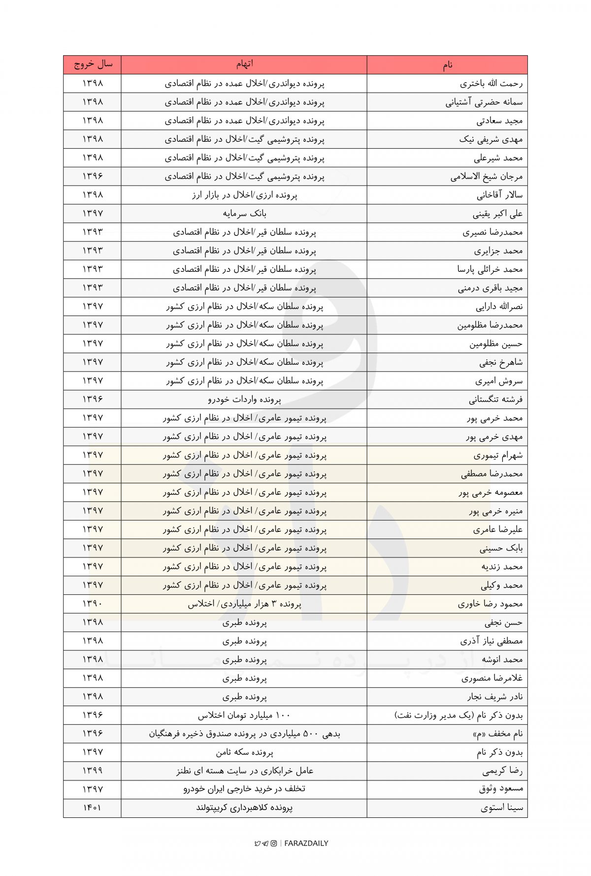 فراز نوشت : در این جدول لیستی از متهمان بزرگ اقتصادی و حتی یک مورد فرد مظنون به خرابکاری در نطنز را آوردهایم که بر خلاف خانواده علی دایی موفق به خروج از کشور شدند.