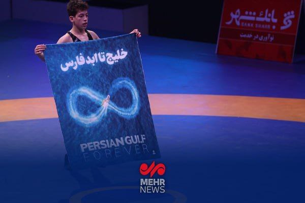 خوشحالی کشتی گیر تهرانی با پرچم خلیج فارس