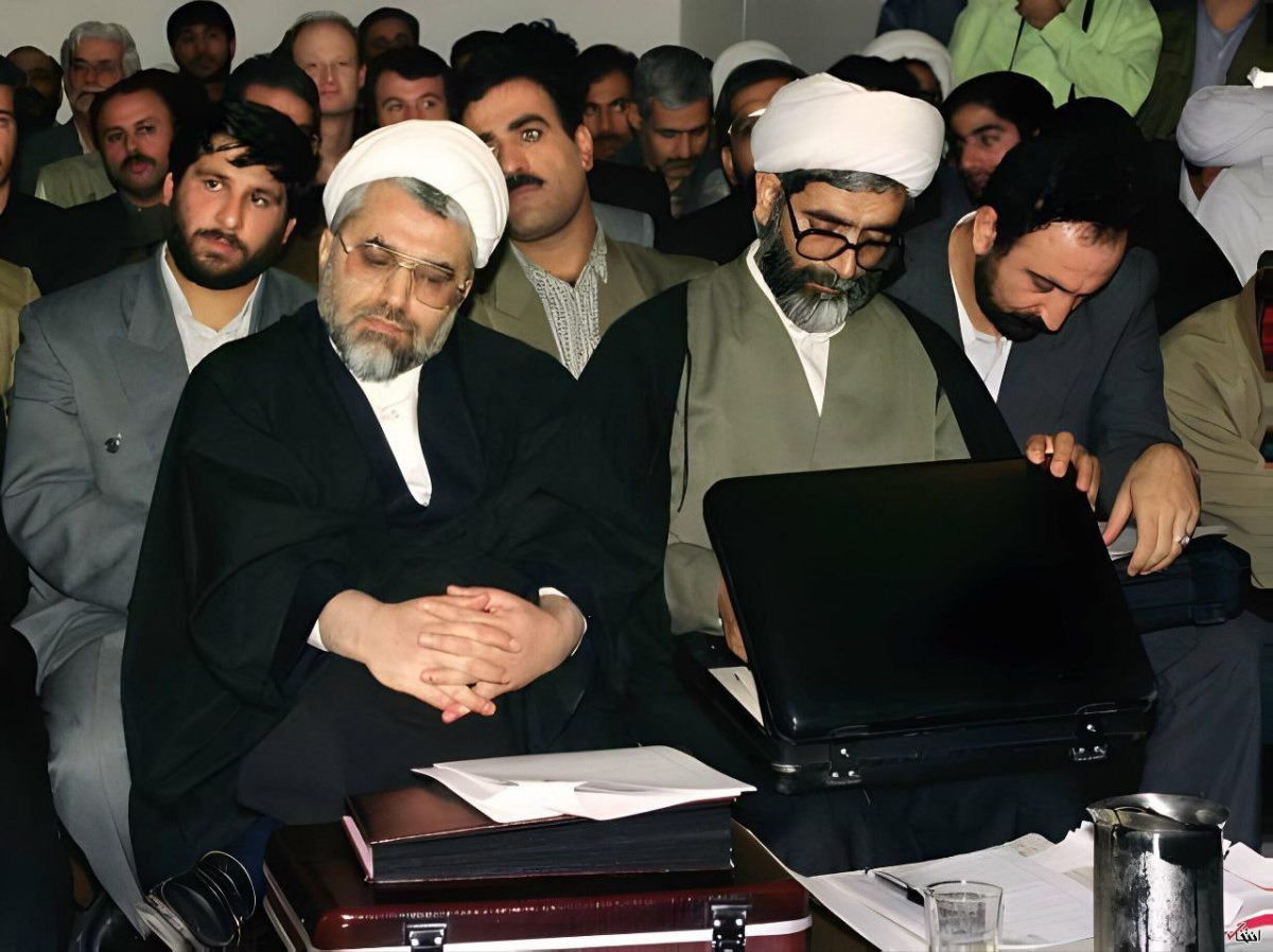 🔹عبدالله نوری، نماینده ادوار مجلس، وزیر کشور دولت هاشمی رفسنجانی و خاتمی، عضو شورای شهر اول تهران و مدیرمسئول روزنامه خرداد، بود. او در پی انتشار روزنامه خرداد و طرح برخی مسائل عقیدتی و سیاسی، از جمله پیگیری قتلهای زنجیرهای به دادگاه ویژه روحانیت فراخوانده شد. شرح دفاعیات وی در این دادگاه در کتابی با عنوان «شوکران اصلاح» منتشر شد. در این تصویر که متعلق به آبان ماه ۱۳۷۸ است؛ عبدالله نوری در دادگاه دیده میشود / انتخاب