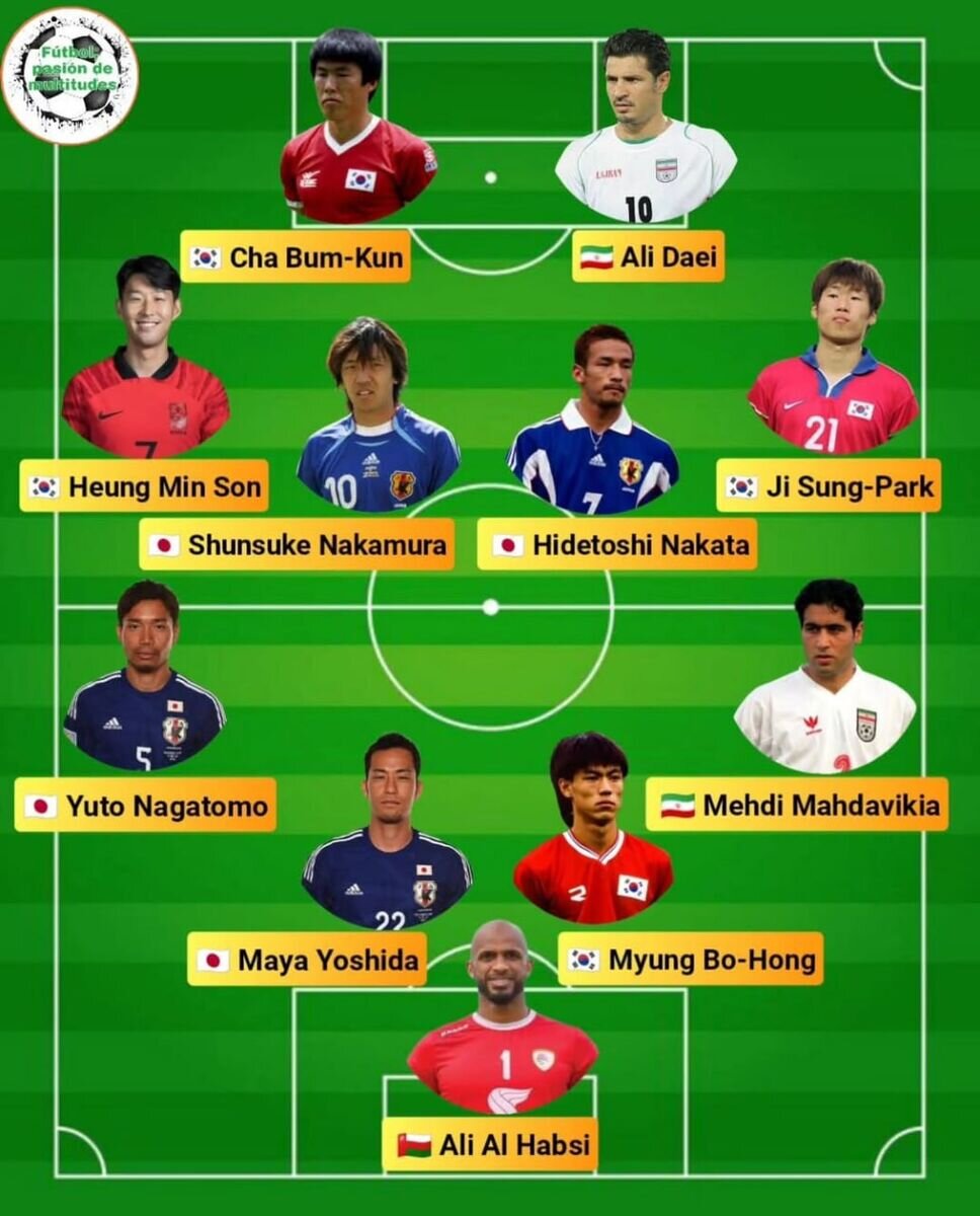 در این تیم چهار بازیکن از کره و چهار بازیکن از ژاپن حضور دارند و به شکلی جالب بازیکنان عربستانی نادیده گرفته شدهاند.