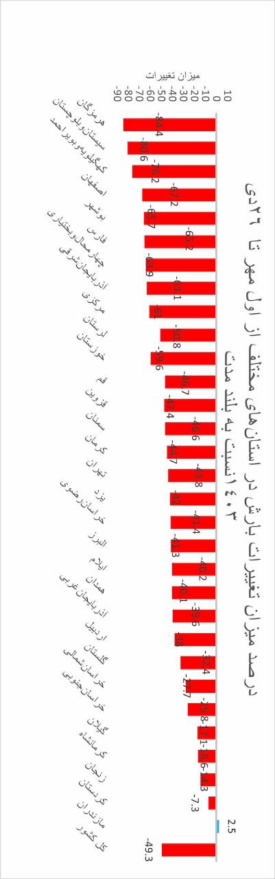 درصد تغییرات میزان بارش در استانهای مختلف از اول مهر تا ۲۶ دی ۱۴۰۳ نسبت به دوره بلندمدت نشاندهنده کاهش قابل توجهی است
