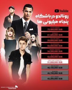 🔹جذب ۵۰ میلیون دنبالکننده در کمتر از ۱۰ روز، رکوردی بیسابقه در تاریخ یوتیوب به حساب میآید که به اسم کریستیانو رونالدو ثبت شد.