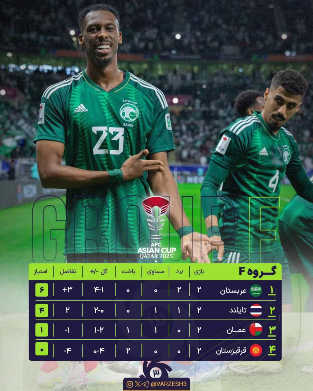 در پایان دور دوم؛ جدول گروه F جام ملتهای آسیا