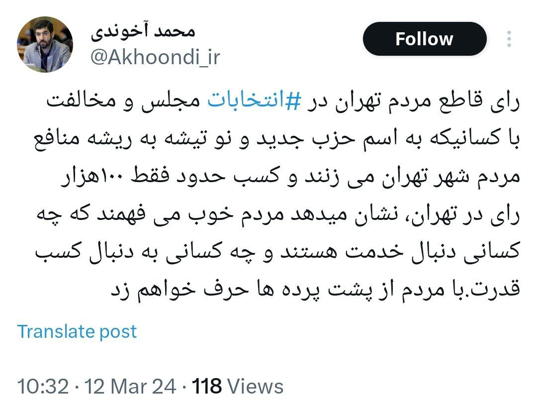 🔹توییت عصو شورای شهر تهران را بخوانید