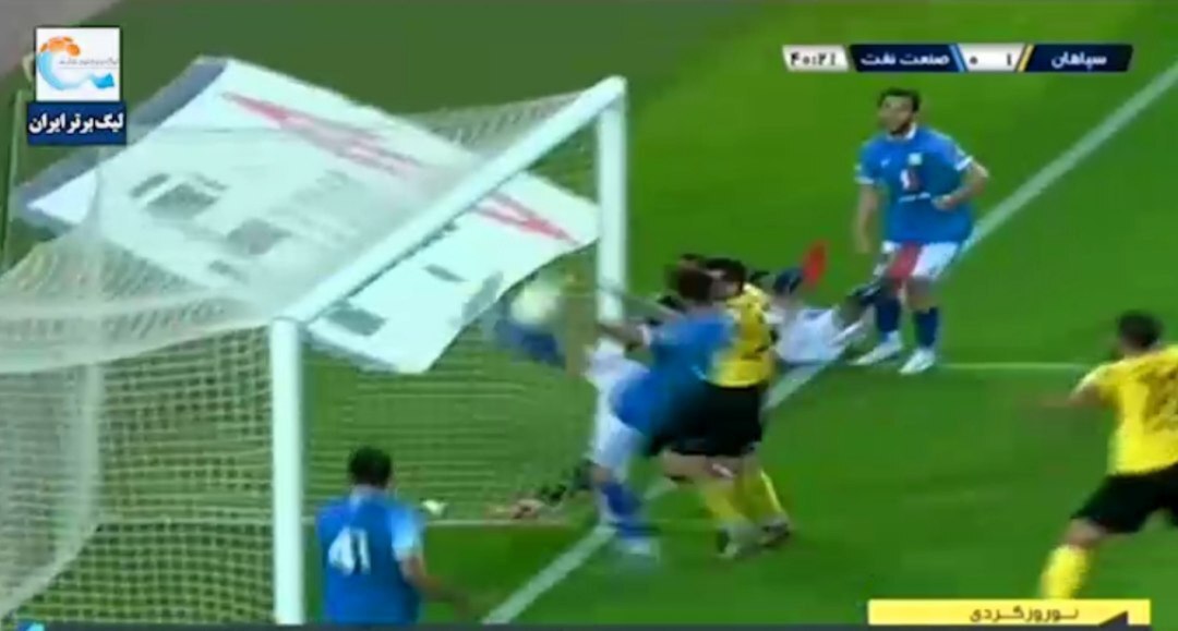 جالب اینکه گزارشگر متعصب اصفهان هم حاضر نشد در گزارش خود برای شبکه ورزش سیما این توپ را گل شده اعلام کند. تصویر به خوبی نشان میدهد صدرنشین لیگ با گل بشدت مشکوک از تیم قعرنشین نفت آبادان که خوب دفاع میکرد، پیش بیفتد.