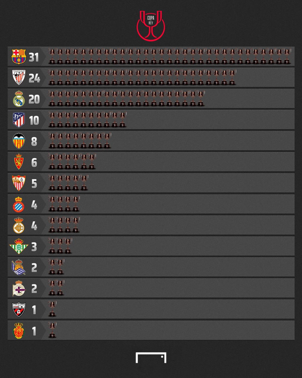 ردهبندی باشگاههای با بیشترین قهرمانی در جام حذفی اسپانیا