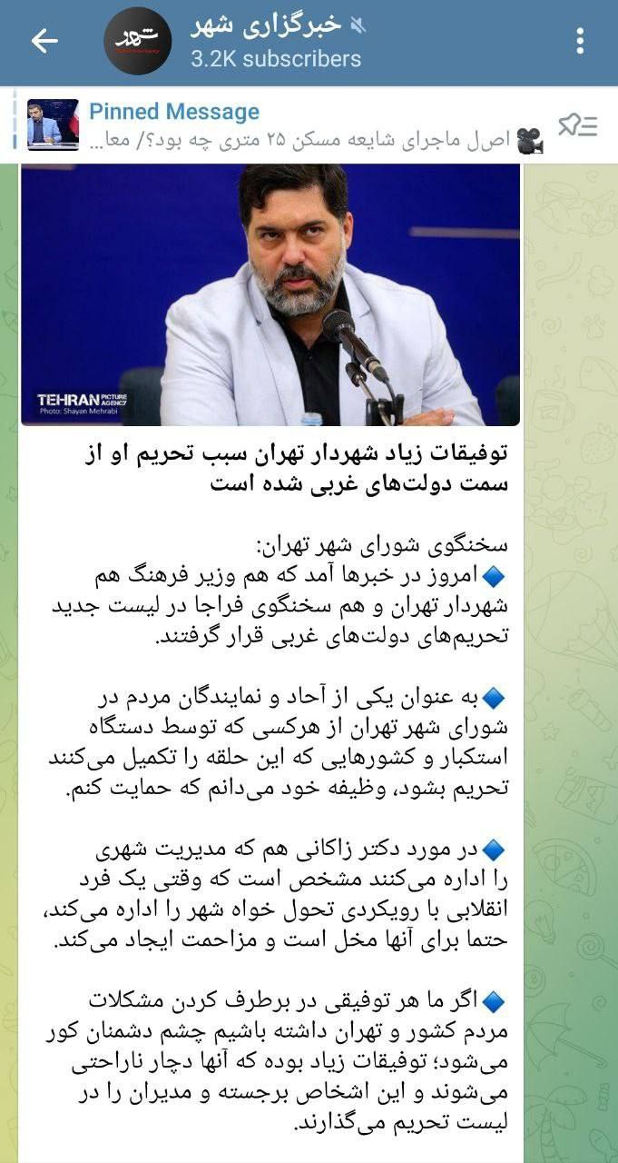 رسانه شهرداری: زاکانی اینقدر موفق بود که تحریمش کردند؟!