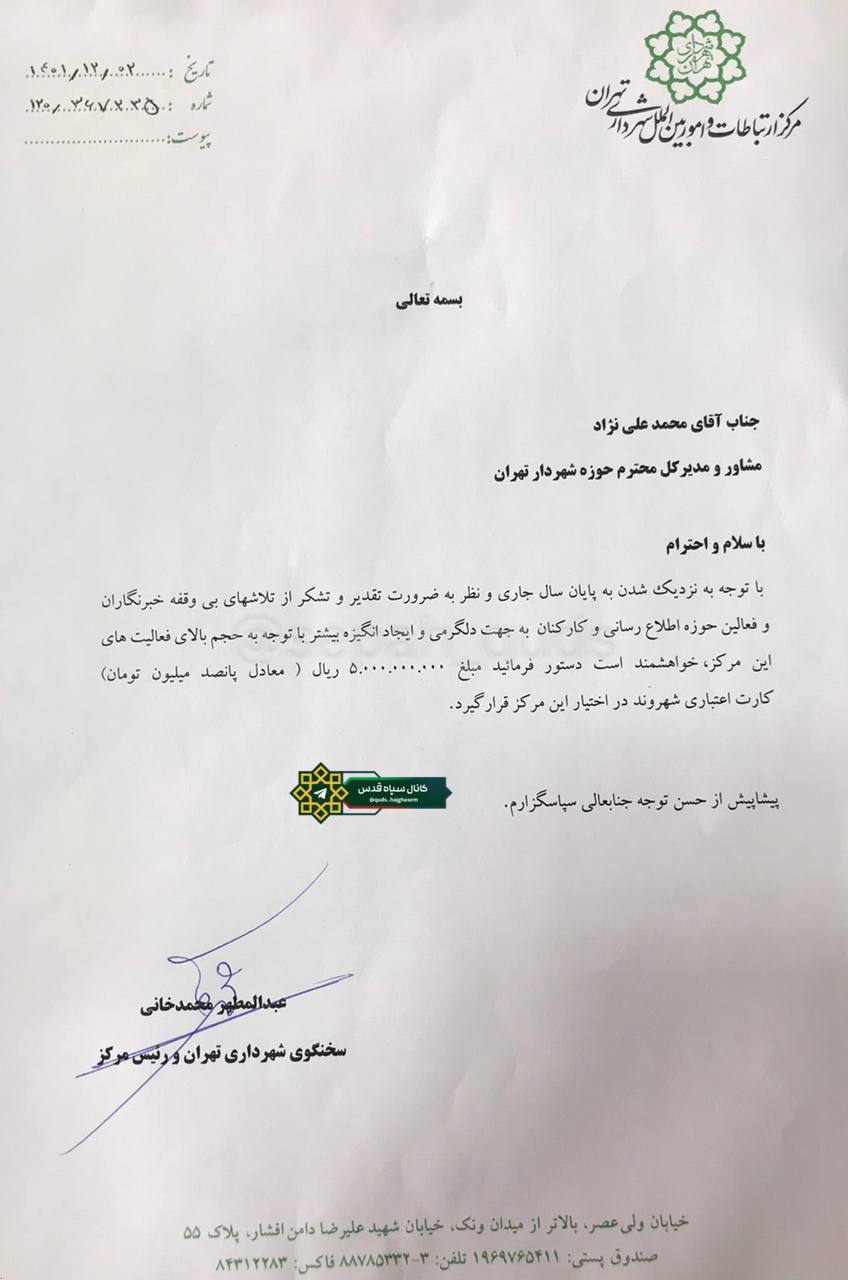 🔺حوزه شهری مگر چند خبرنگار دارد که جناب محمدخانی درخواست بن هدیه شهروند به مبلغ ۵۰۰ میلیون تومان داده است؟