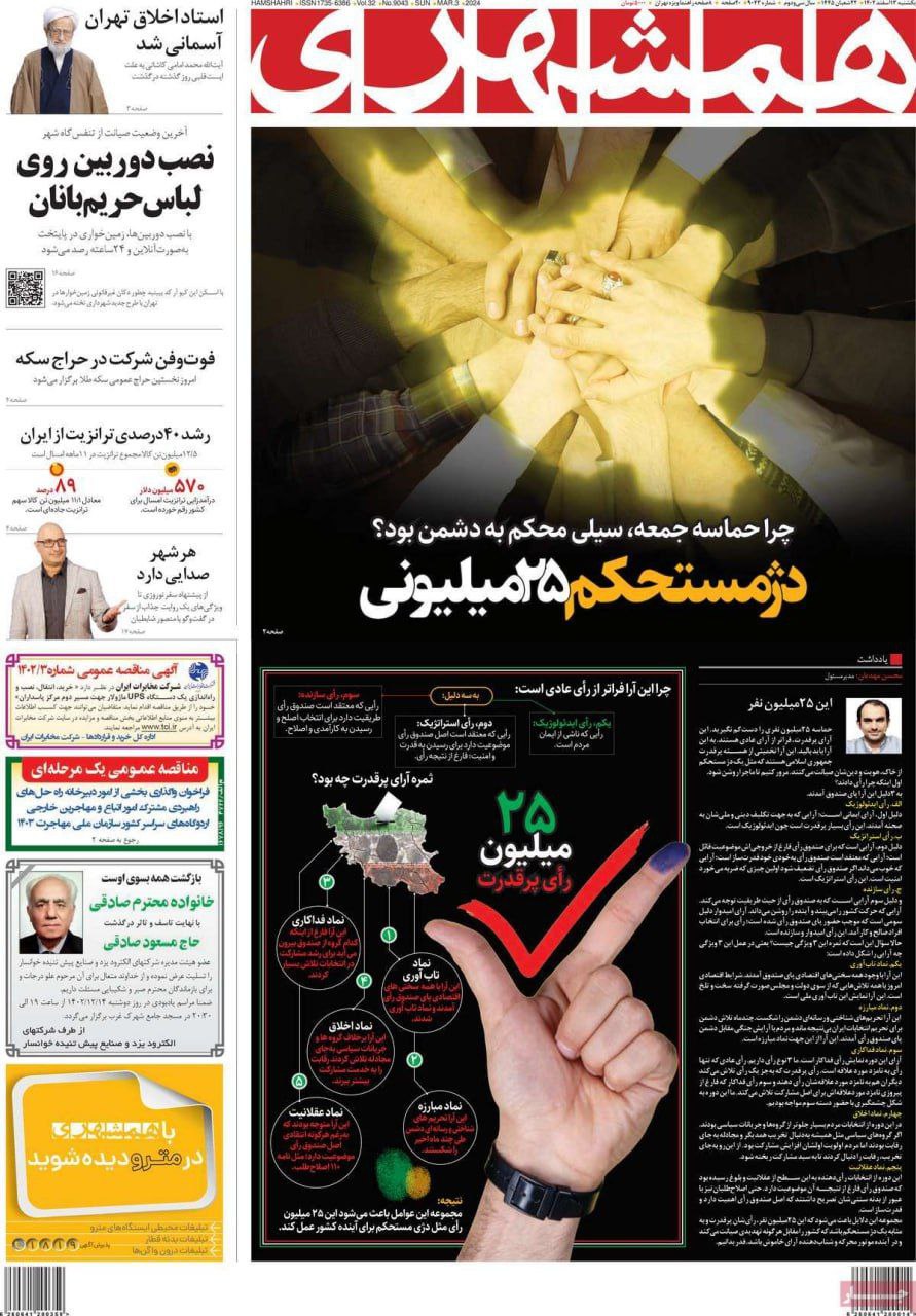 روزنامه همشهری (ارگان شهرداری تهران) تیتر یک: دژ مستحکم ۲۵ میلیونی