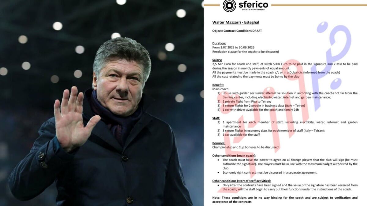 پیشنویس قرارداد پیشنهادی والتر ماتزاری، سرمربی ایتالیایی، به باشگاه استقلال نشان میدهد ماتزاری شروط مالی و فنی قابل توجهی را برای پذیرفتن هدایت آبیپوشان مطرح کرده بود که در نهایت با مخالفت باشگاه استقلال روبهرو شد.