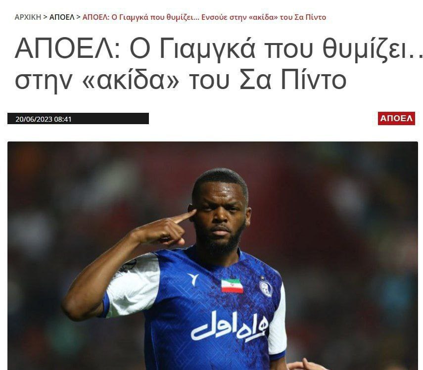 سایت اسپورت یونان مدعی شد مذاکرات کوین یامگا با باشگاه آپوئل قبرس در مراحل نهایی قرار دارد و او در آستانه انتقال به این تیم که تحت هدایت ساپینتو است میباشد!