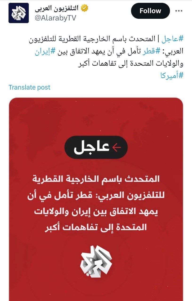 سخنگوی وزارت خارجه قطر به شبكه العربي گفت: قطر امیدوار است که توافق بین ایران و آمریکا راه را برای تفاهمات بیشتر هموار کند.