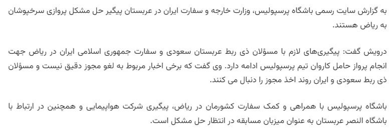 سعودیها و سفارت ایران پیگیر حل مشکل پروازی پرسپولیس
