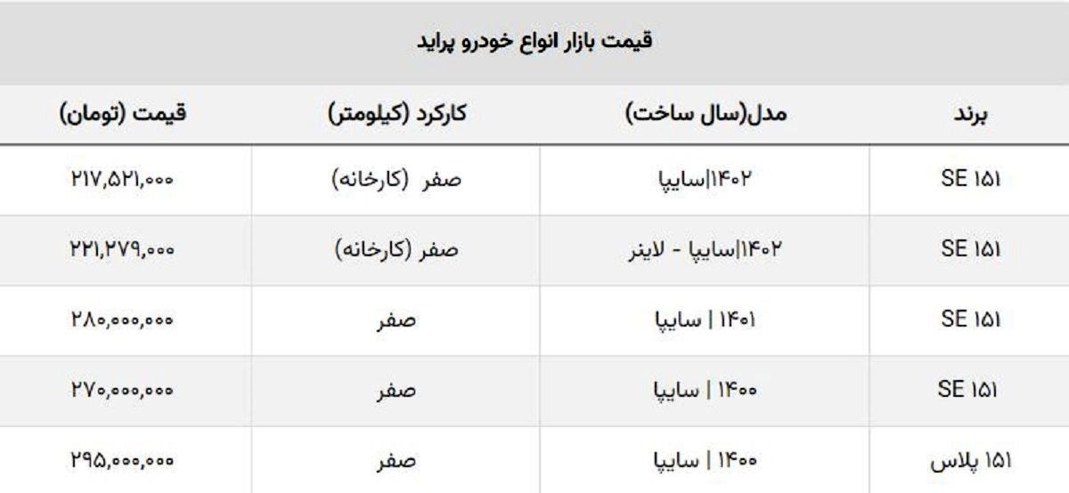 🔹️پراید صفر ۱۴۰۱ مدل ۱۵۱ SE نیز ۲۵ میلیون کاهش داشته است. پراید مدل ۱۴۰۰ صفر نیز ۲۵ میلیون کاهش را به ثبت رسانده است./