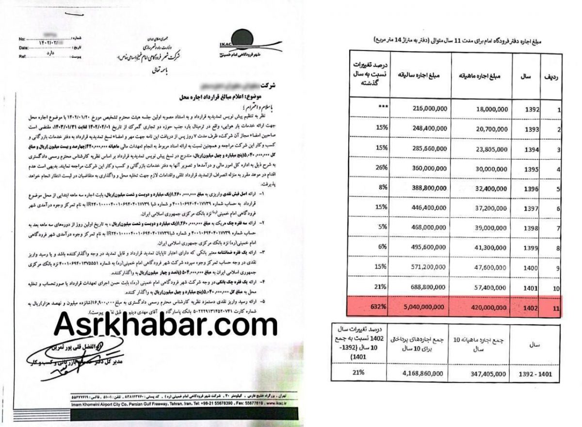 سکوت وزارت راه دربارهٔ گرانی ۷ برابری اجاره در فرودگاه امام
