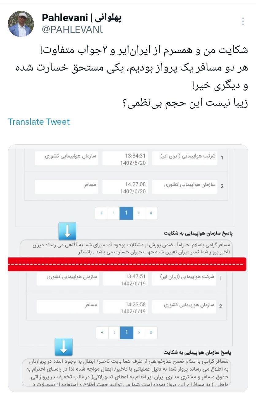 🔹شکایت من و همسرم از ایرانایر و دو جواب متفاوت!