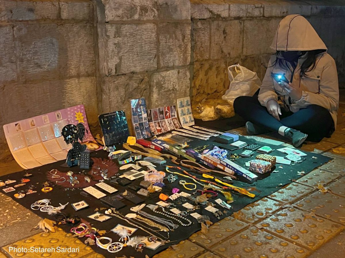 🔹این بانوی ۲۶ساله فارغ التحصیل رشته زمین شناسی، بازیگر تئاترِ و دستیار طراح صحنه، برای گذران زندگی، شبها در راستای خیابان انقلاب کنار دانشگاه تهران کار می کند.