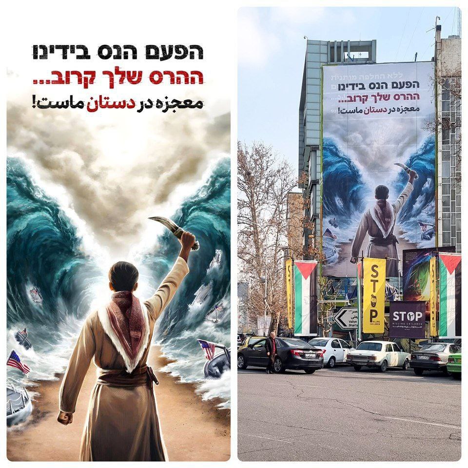 شعار جالب عبری دیوارنگاره میدان فلسطین تهران: معجزه در دستان ماست