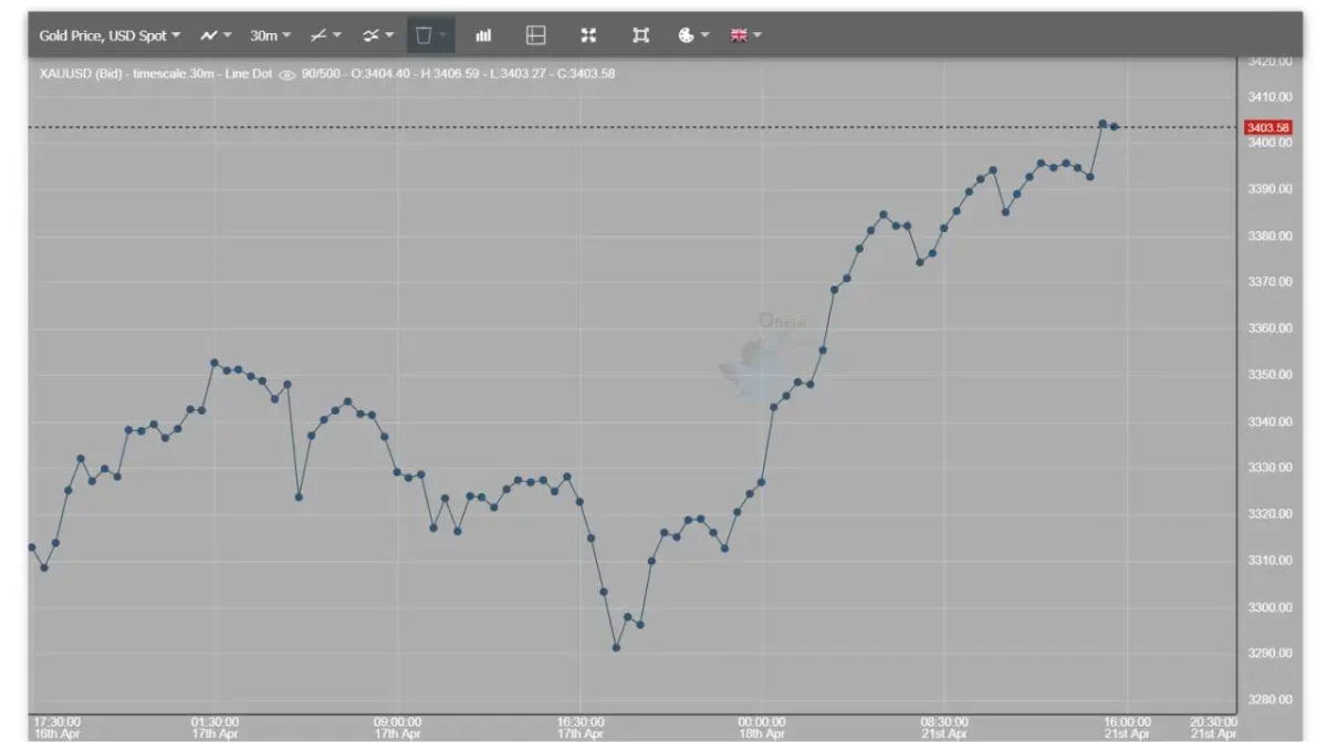 قراردادهای آتی طلا در بازار COMEX به قیمت ۳۴۰۵،۹۴ دلار رسیدند که بالاتر از رکورد ثبتشده در ۱۷ آوریل است.