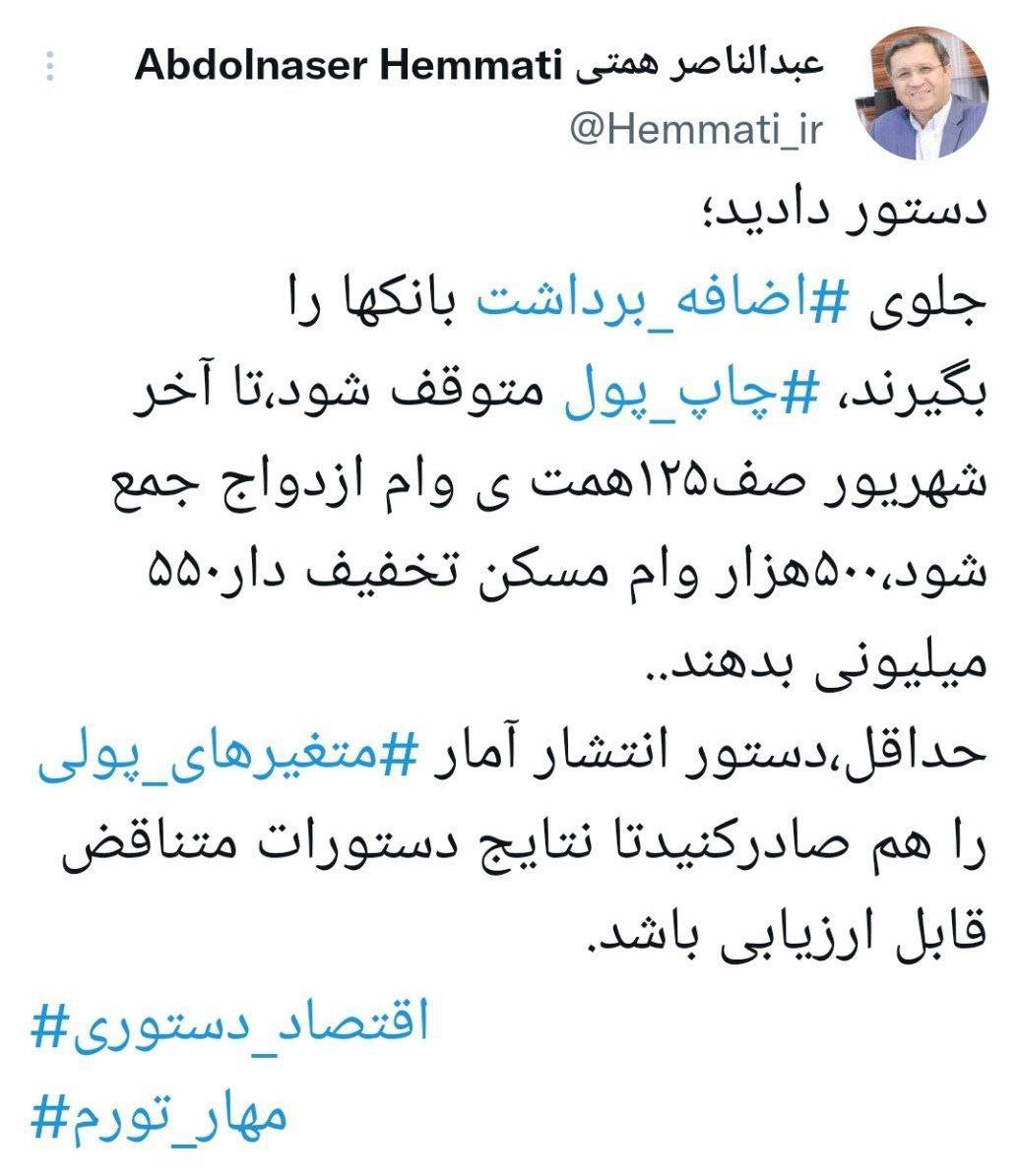 حداقل،دستور انتشار آمار متغیرهای پولی را هم صادرکنید تا نتایج دستورات متناقض قابل ارزیابی باشد.