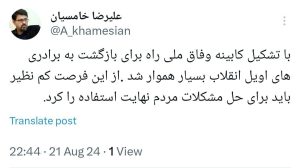 علیرضا خامسیان فعال رسانه ای: با تشکیل کابینه وفاق ملی راه برای بازگشت به برادری های اوایل انقلاب بسیار هموار شد