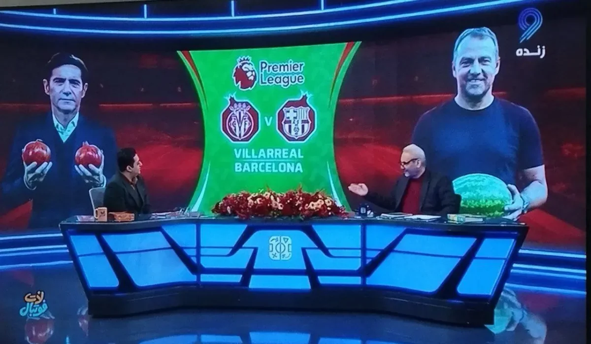 دیدار حساس هفته هفدهم لالیگا میان ویارئال و بارسلونا که از شبکه ورزش صداوسیما پخش میشد، با حواشی عجیب و جنجالی همراه بود، همزمان با شب یلدا، صداوسیما در اقدامی غیرمنتظره، در تصاویر پسزمینه دست سرمربیان دو تیم اسپانیایی را با انار و هندوانه تزئین کرد تا حال و هوای شب یلدا را القا کند.