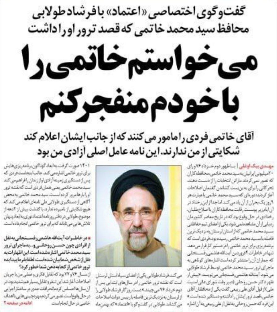فرشاد طولابی محافظ سید محمد خاتمی که قصد ترور او را داشت: میخواستمخاتمی را با خودم منفجرکنم