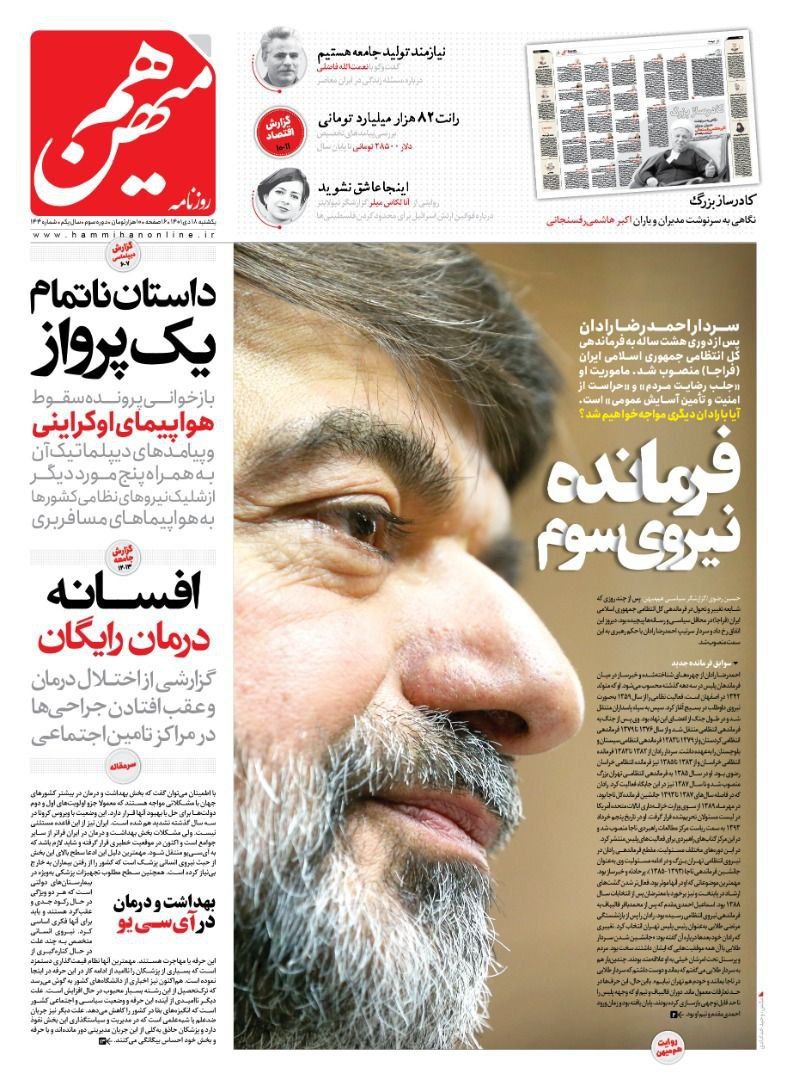 صفحه نخست روزنامه هم میهن