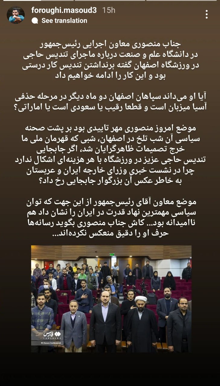 قائم مقام رونامه فرهیختگان: اگر جابجایی تندیس حاج قاسم با هر هزینه ای اشکال ندارد، چرا وزارت خارجه عکس حاج قاسم را جابجا کرد؟!