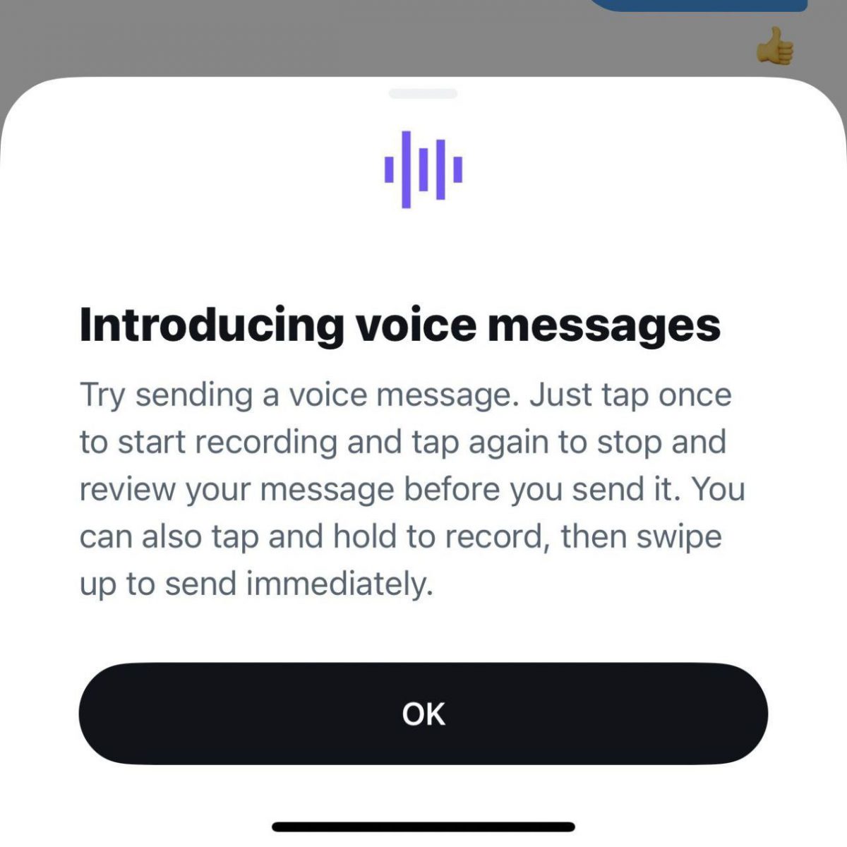 🔹 برای ارسال پیام صوتی، ابتدا باید آخرین نسخه برنامه را از طریق گوگل پلی یا اپ استور دانلود کنید و سپس هنگام وارد شدن به قسمت پیامها با گزینه جدیدی با رنگ بنفش مواجه خواهید شد که از طریق آن میتوانید صدای خود را ضبط و ارسال کنید.