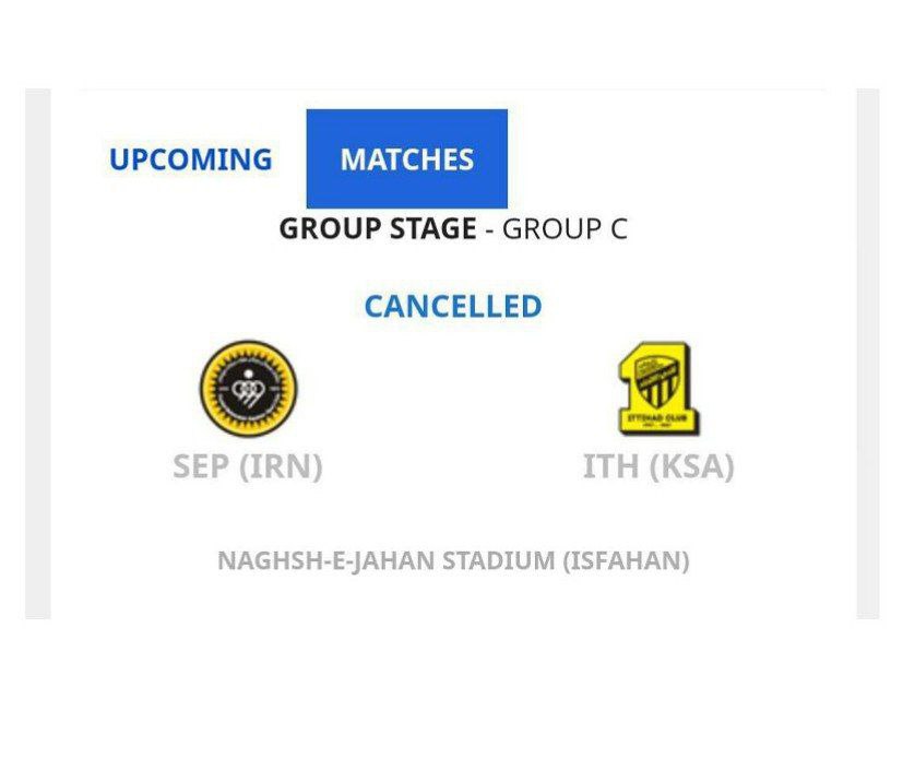 🔹دیدار تیمهای سپاهان اصفهان و الاتحاد عربستان که در هفته دوم لیگ قهرمانان آسیا برگزار نشده بود و قرار بود تکرار شود در سایت کنفدراسیون فوتبال آسیا به لغو شده تغییر کرد.