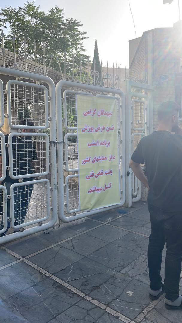 🔹 کنسرت امشب «رضا بهرام» در سالن وزارت کشور در حالی بدون اعلام قبلی کنسل شد که مدیران سالن با نصب این تصویر مقابل در ورودی سالن وزارت کشور، نقص فنی را دلیل لغو کنسرت امشب اعلام کرده اند. باید دید این مشکل فنی برای کنسرت شب های آینده حل خواهد شد یا خیر…