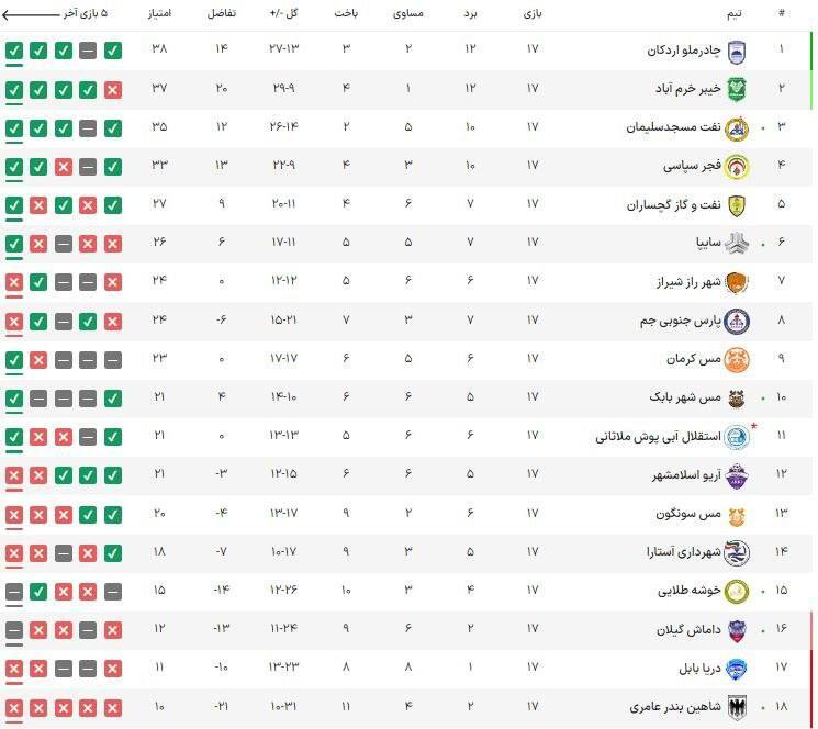 ، هفته هفدهم لیگ دسته اول با برگزاری 6 دیدار پیگیری شد و نیم فصل اول این رقابتها به پایان رسید. چادر ملو با پیروزی خارج از خانه، 38 امتیازی و مجدداً صدرنشین شد. در دیگر بازی این هفته کرمانیها برنده دوئل مسیهای لیگ یک بودند.