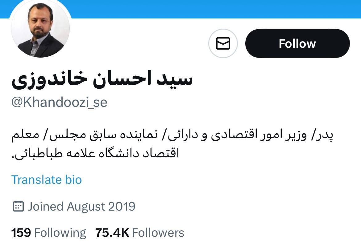 پینوشت: تنها اکانت وزیر اقتصاد در پلتفرم توییتر که بصورت شخصی اداره میشود به آدرس(@khandoozi_se) است.
