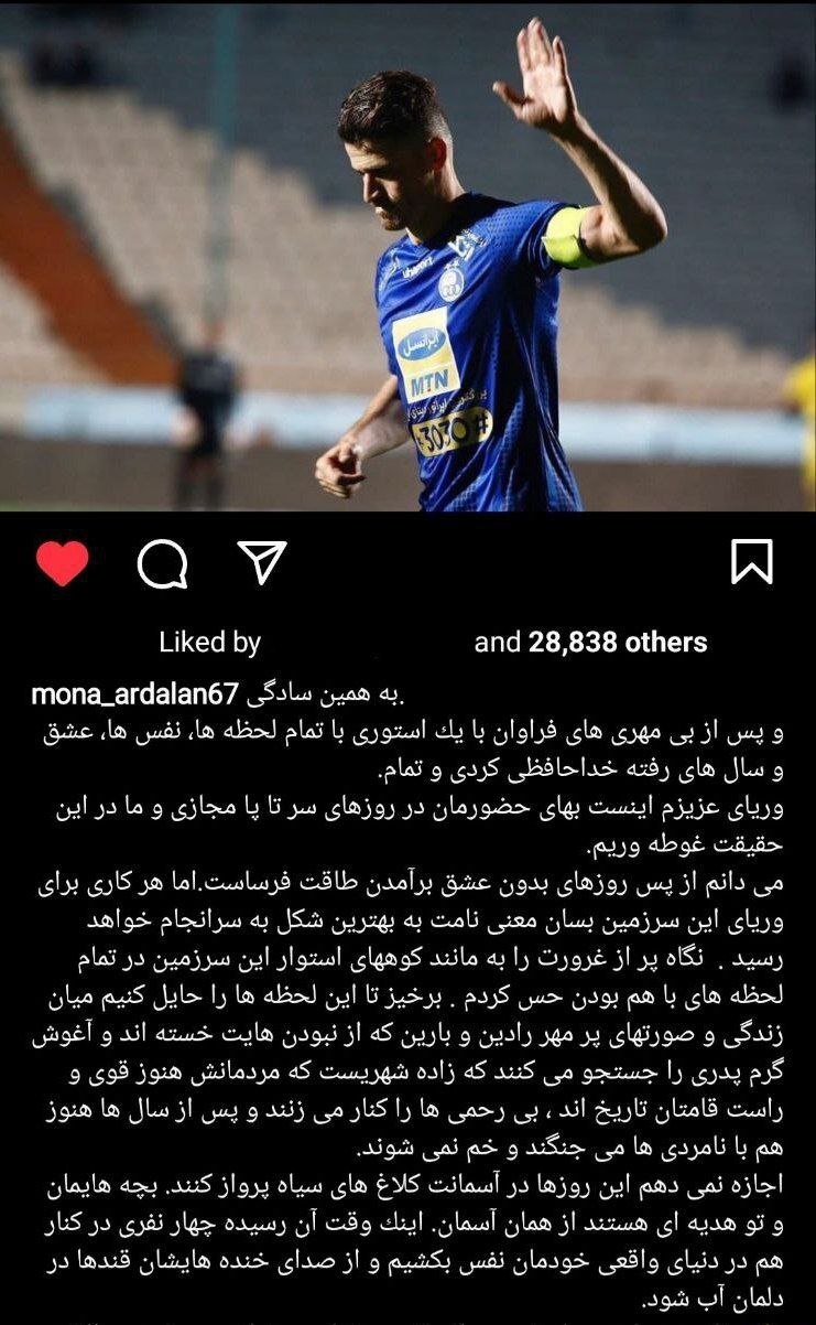 🔹همسر وریا روز گذشته در پیامی اینستاگرامی نسبت به خداحافظی کاپیتان سابق استقلال نوشت: به همین سادگى؛ و پس از بی مهریهای فراوان با یک استوری با تمام لحظه ها، نفس ها، عشق و سال هاى رفته خداحافظى کردى و تمام…