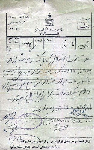 متن تلگراف اعلام تعطیلی روز ملی شدن نفت به دستور محمد مصدق در سال ۱۳۳۰/ آرشیو کتابخانه ملی