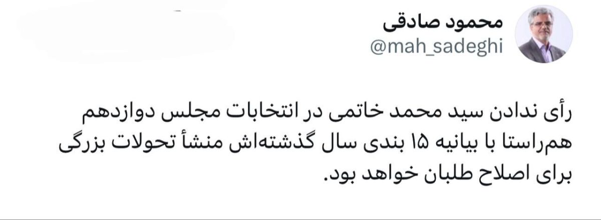 محمود صادقی: رأی ندادن سید محمد خاتمی در انتخابات مجلس دوازدهم همراستا با بیانیه ۱۵ بندی سال گذشتهاش منشأ تحولات بزرگی برای اصلاح طلبان خواهد بود.
