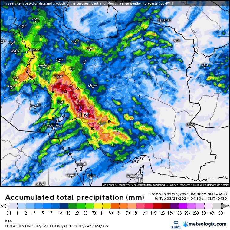 مدل تجمعی بارش ۴۸ ساعت آینده ایران
