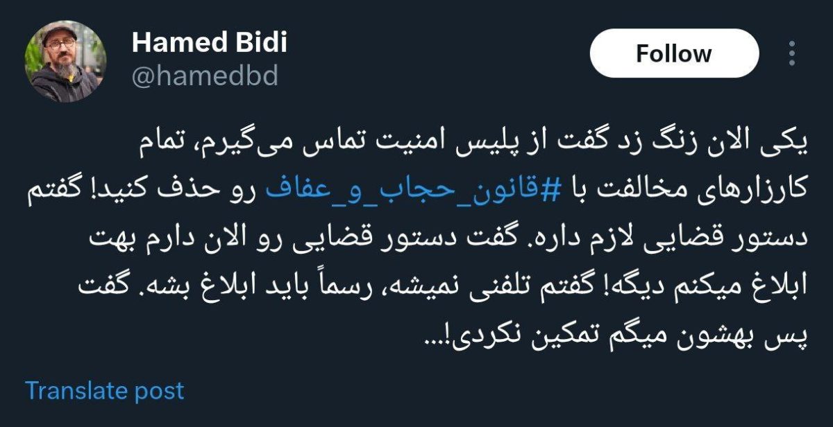 مدیر پلتفرم کارزار از تماس تلفنی پلیس برای حذف نظرخواهی درباره حجاب گفت