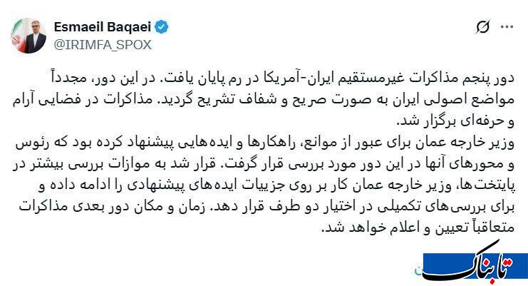 دور پنجم مذاکرات غیرمستقیم ایران-آمریکا در رم پایان یافت. در این دور، مجددا مواضع اصولی ایران به صورت صریح و شفاف تشریح گردید. مذاکرات در فضایی آرام و حرفهای برگزار شد.