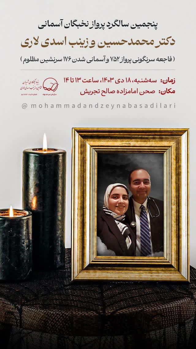 مراسم پنجمین سالگرد شهادت دکتر محمد حسین و زینب اسدی لاری در فاجعه سرنگونی پرواز ۷۵۲