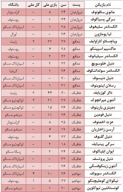 🔹روسیه تحت هدایت کارپین در دوران تعلیق به دنبال تغییر نسل رفته است و بیشتر بازیکنان این تیم را بازیکنان جوان شاغل در لیگ روسیه تشکیل میدهند.
